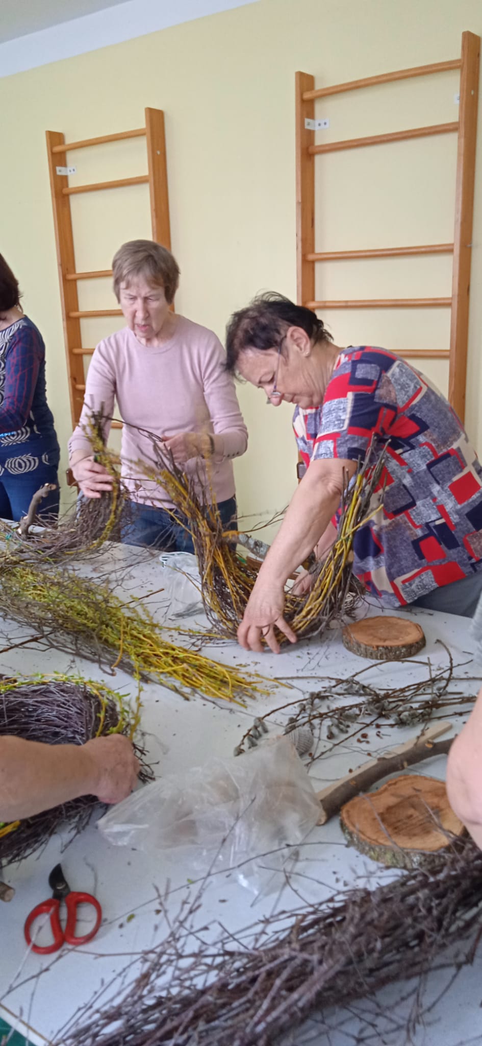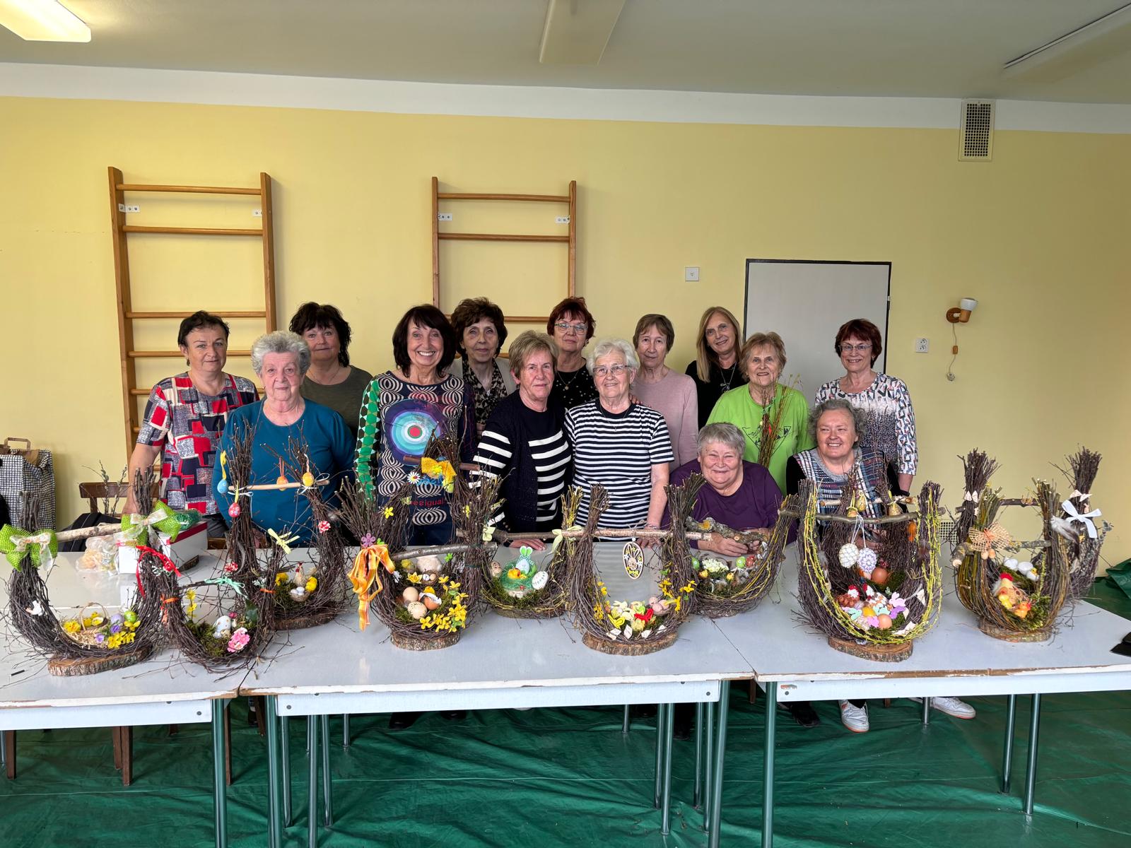 Na tuto lekci si tvořivé ženy přinesly   březové   proutí   a vyráběly se velikonoční dekorace. Vznikly překrásné výrobky, kterými si ženy zpestřily svůj domov. Lektorkami kurzu byly paní Marcela Nováková a Marcela Štveráková.