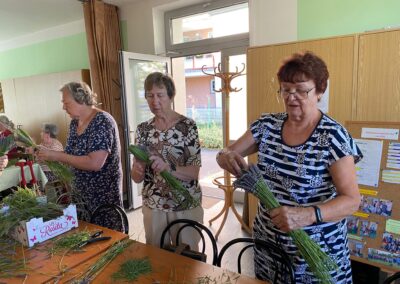 V červenci tradičně čekáme na kvetoucí levanduli, abychom si mohly udělat voňavou dekoraci. Tentokrát si pro nás lektorky paní Nováková a Štveráková připravily kytičku z levandule.