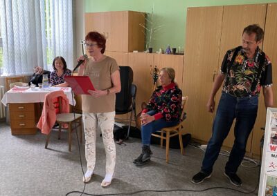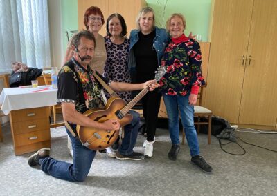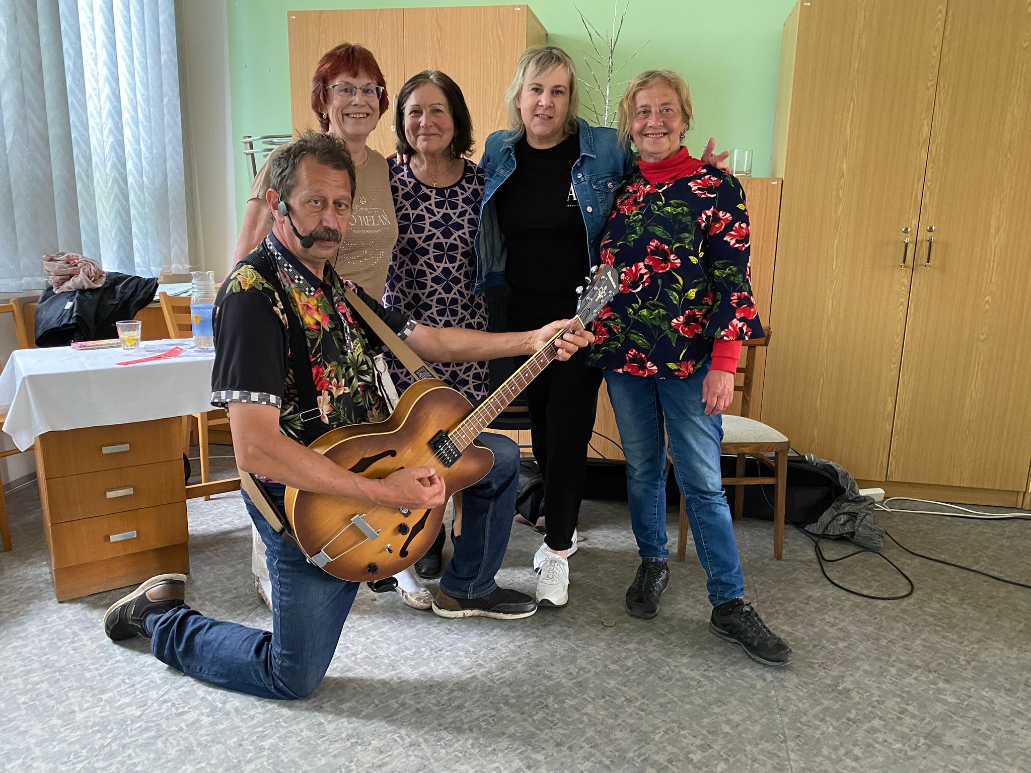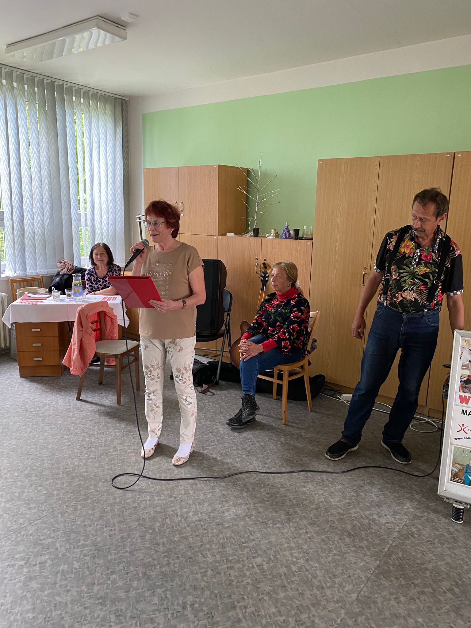 Setkání matek v klubovně územního sdružení probíhalo  ve veselém  duchu. Při příchodu na akci dostaly všechny účastnice růži. Program si pro nás připravil pan Pavel Justich, který zahrál na kytaru k poslechu a hlavně k tanci.